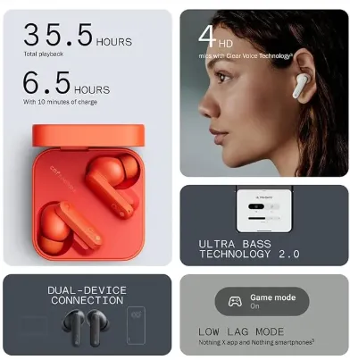 The CMF Buds Wireless Bluetooth Earbuds deliver next-level audio performance with 42dB Active Noise Cancellation and Dirac HD Sound for a rich, immersive listening experience. Perfect for music, calls... Read More