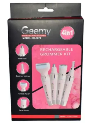 GM-3074 Geemy Rechargeable 4-in-1 Nose and Hair Trimmer – Full Body Grooming Kit for Women and Girls
