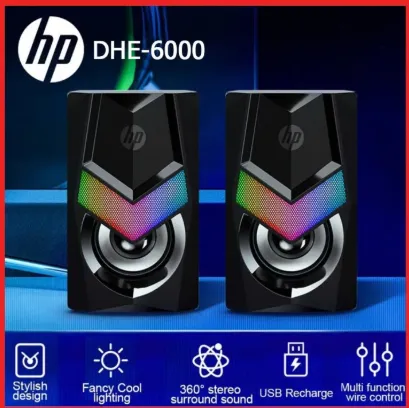 HP DHE-6000 Wired RGB Multimedia Stereo Sound Speaker USB Powered with In-Line Volume Control – 6 Months Warranty