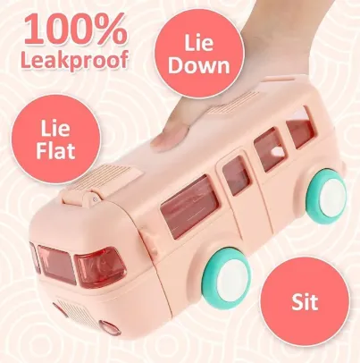 Kid Bus Water Bottle with Straw – Boys and Girls