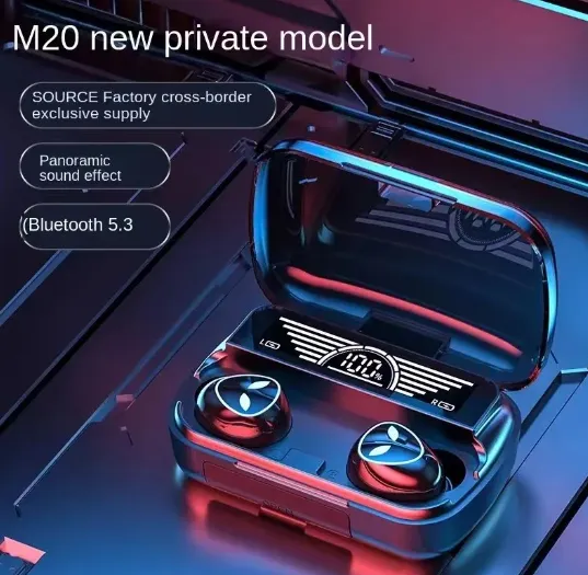 M20 TWS Wireless Earbuds Bluetooth Headphones with LED Display Noise Cancelling Touch Control HiFi Sound and Power Bank Case