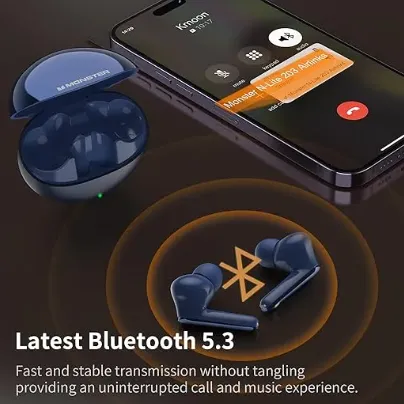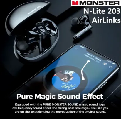 Monster N-Lite 203 AirLinks Wireless Earbuds Bluetooth 5.3 Headphones HiFi Stereo 30H Playback Crystal Clear Call Type-C Charging IPX6 Waterproof In-E
