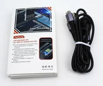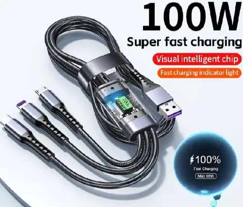 100W 3 in 1 fast charging data cable phone accessories transparent usb micro type c lighting charging cable