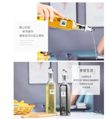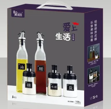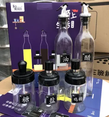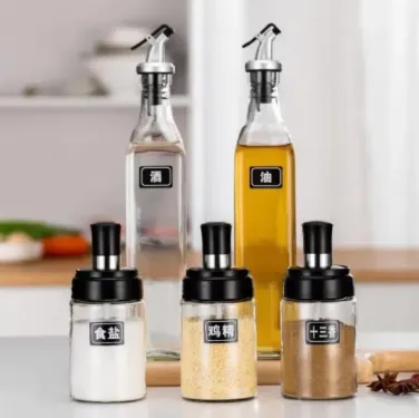 5pc set Glass oil bottle and seasoning bottle with lid kitchen gadgets.