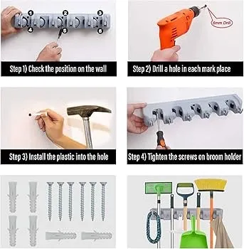 Broom holder hanger for bathroom 5 hole mop brush holder home cleaning