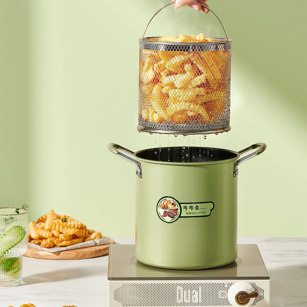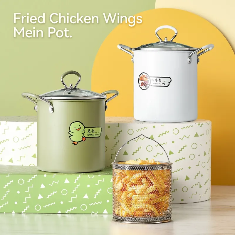 Cooking deep fryer pot with oil filter basket kitchen cook ware