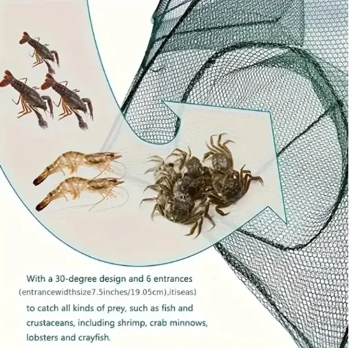 HexaCatcher 6-Hole Hexagonal Portable Fishing Net Trap - Durable Nylon Shrimp, Crab & Fish Catching Tool for Outdoor Fishing Adventures FOLDING SHRIMP