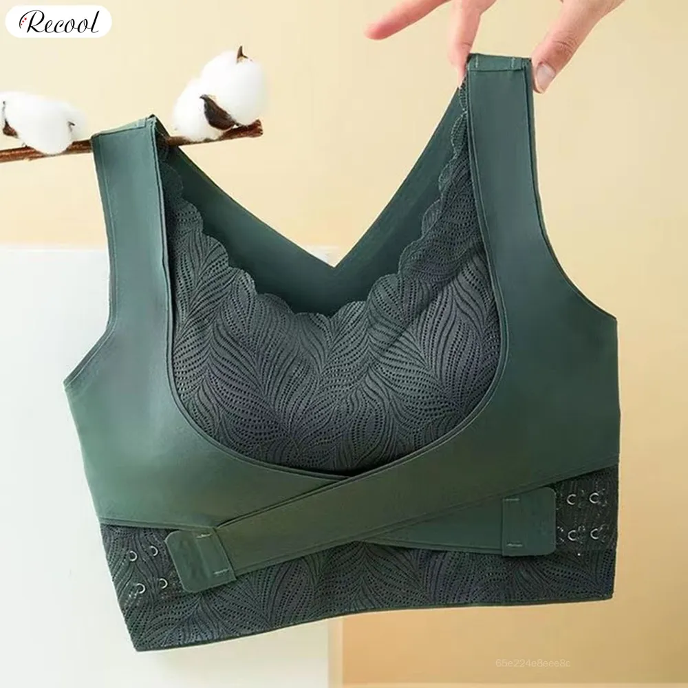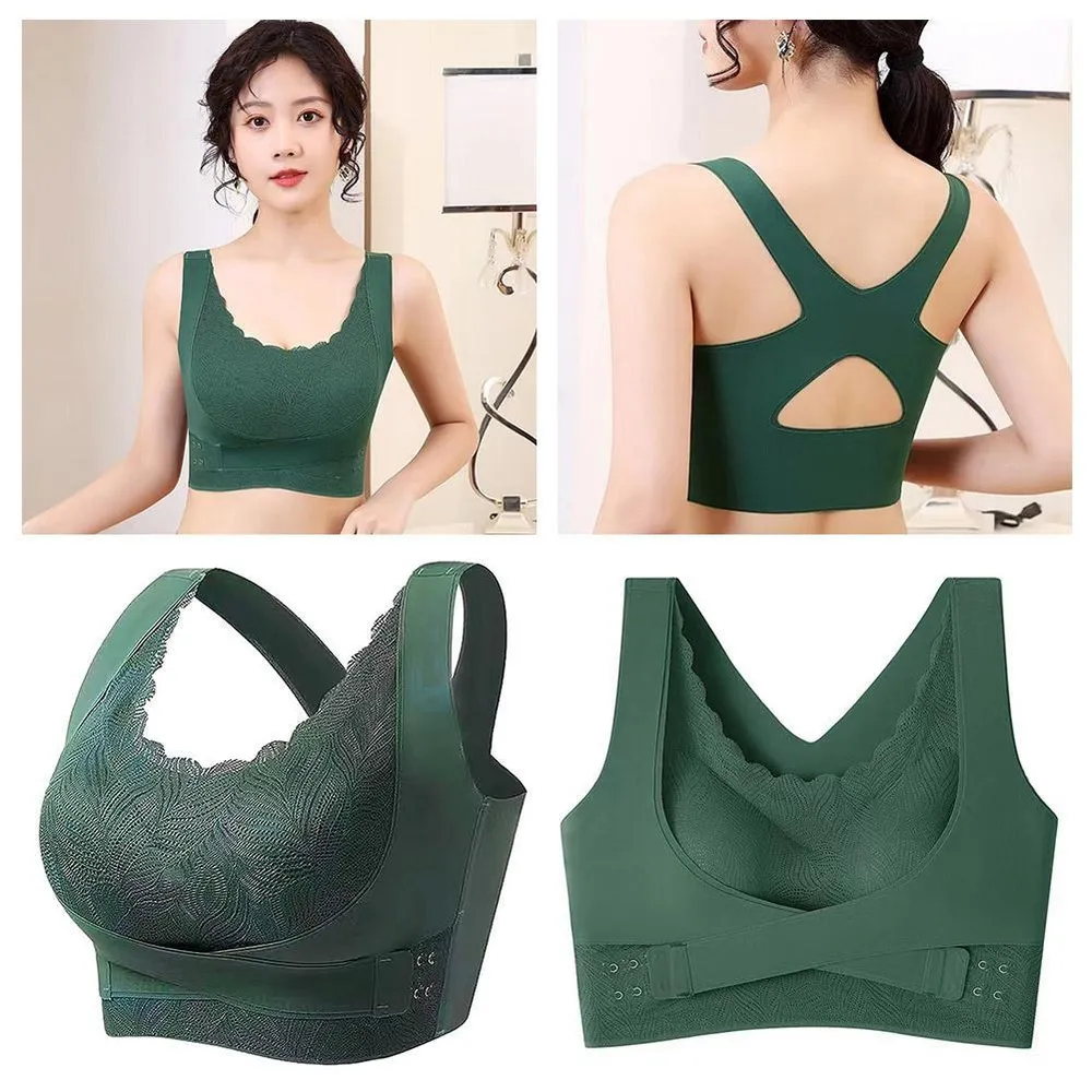 High Quality Seamless Lace Wireless Underwear Cross Front Buckle Chest Pad Sexy Gathered Women'S Bra