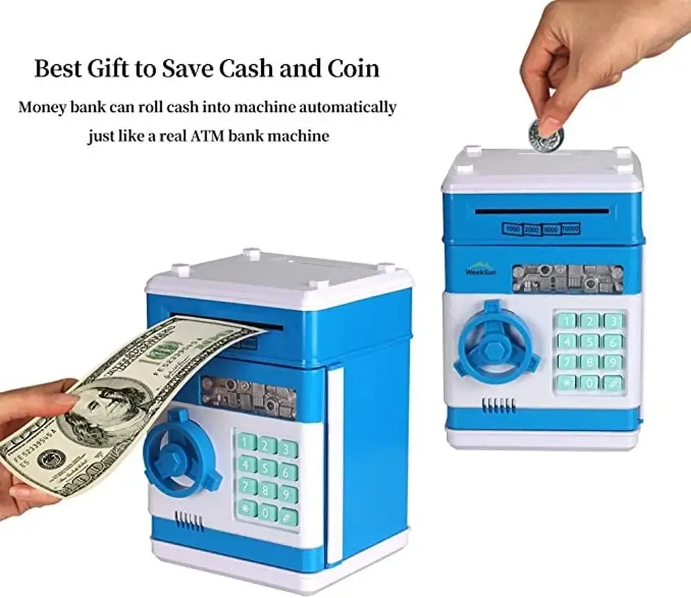 Teach children the value of saving with this fun and secure electronic money saving box. Designed like a mini safe, it accepts both coins and bills, making saving money exciting and educational. The n... Read More