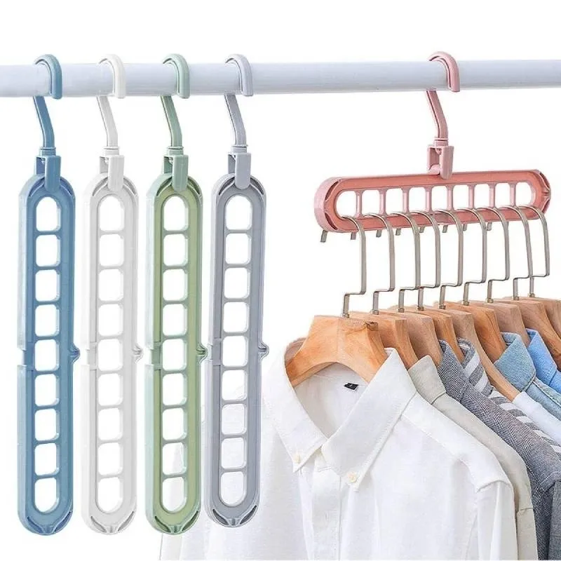 Maximize your wardrobe space with this 9-hole multifunctional plastic hanger. Designed for efficient storage, it helps you keep clothes neat and organized in cupboards and wardrobes. Strong, lightweig... Read More