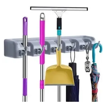 Declutter your home, garage, or workplace with this heavy-duty wall-mounted mop and broom organizer! This space-saving storage solution is designed to securely hold mops, brooms, and a variety of othe... Read More