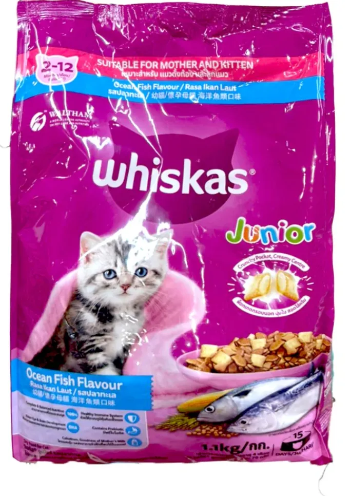 Whiskas Kitten Cat Food l Whiskas Junior 450g l Kitten 2 month to 12 month Cat Food Ocean Fish Flavour 450g whiskas Whiskas Junior Crunchy pocket, Creamy Centre ... Read More