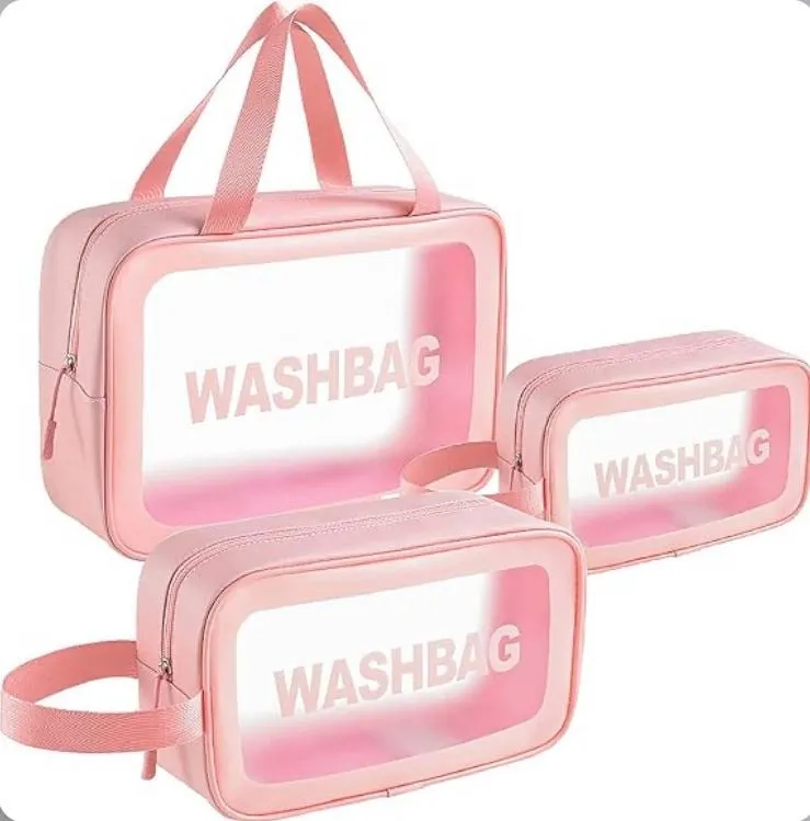 Clear Cosmetic Travel Wash Bag – Small (Pink)