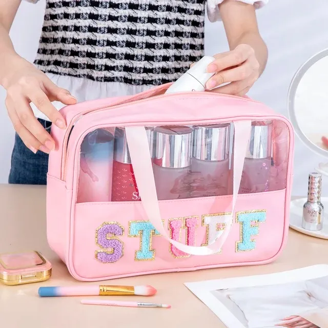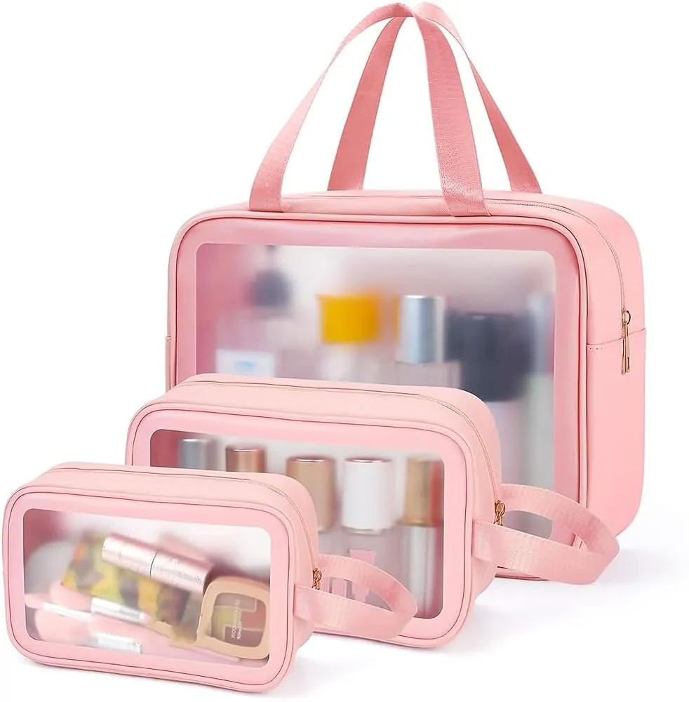 Clear Cosmetic Travel Wash Bag -Medium (Pink)