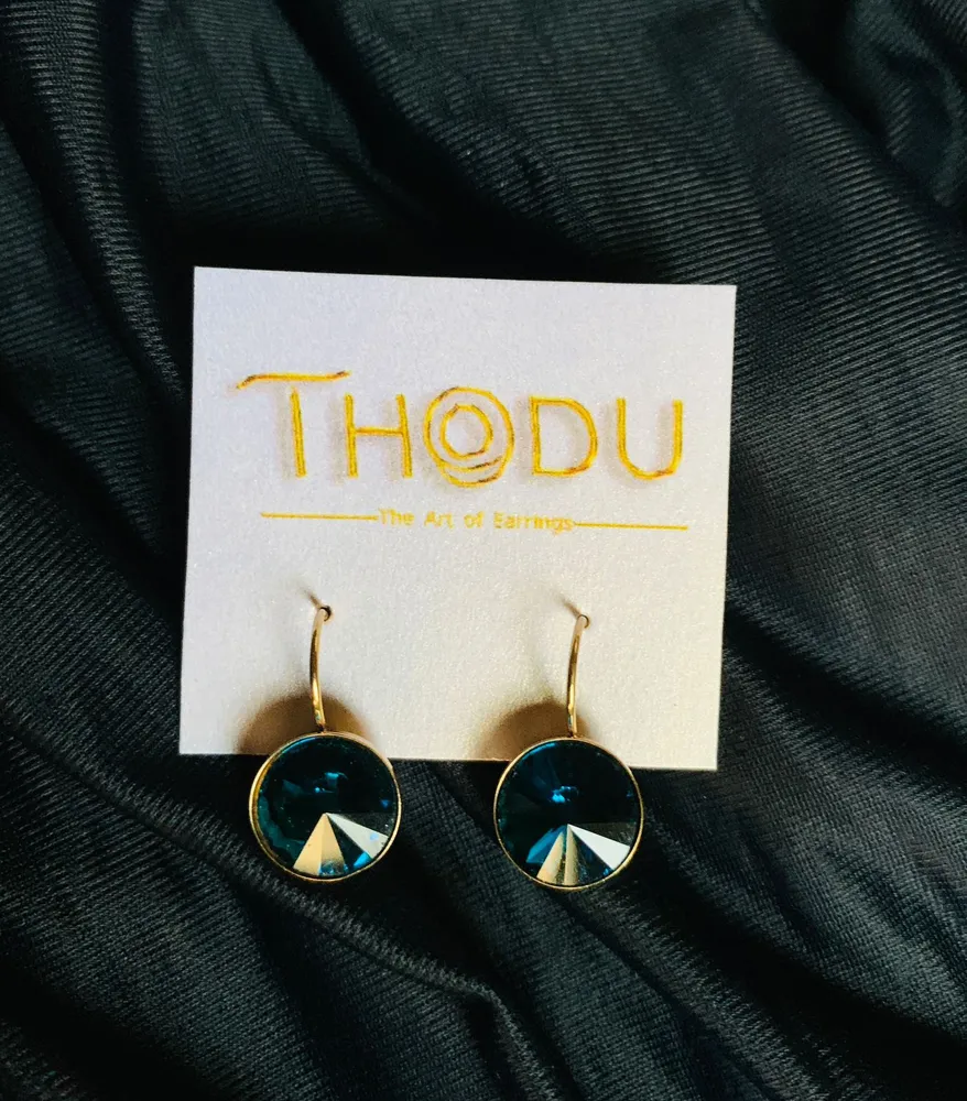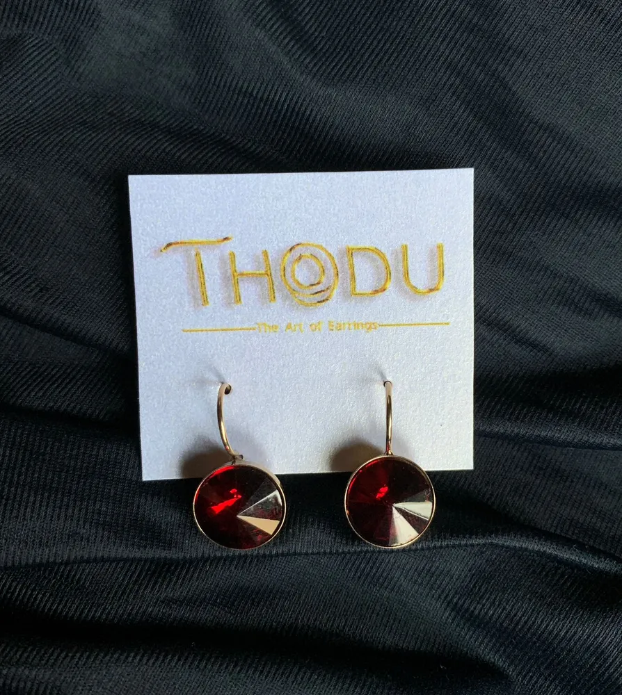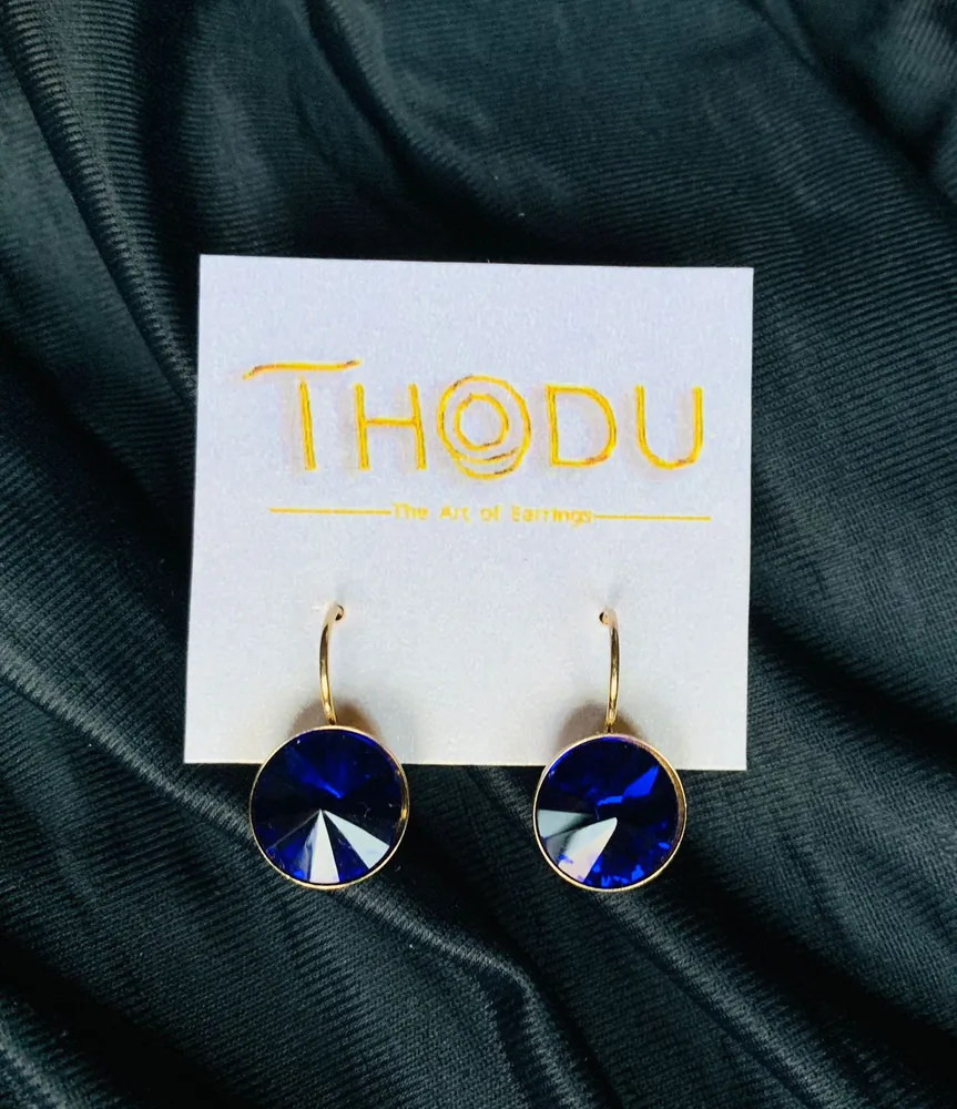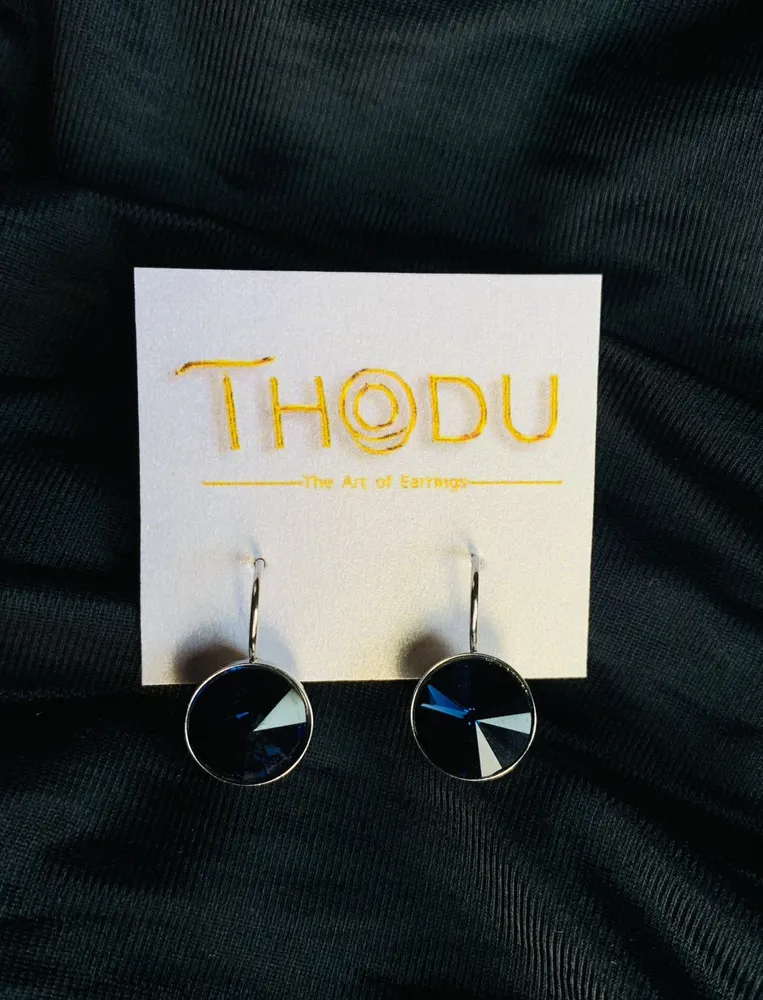 THODU round drop earrings feature a bold circular design in a shiny setting for a stylish, modern look. Available in a range of colours: red, black, teal, navy blue, and deep blue. ... Read More