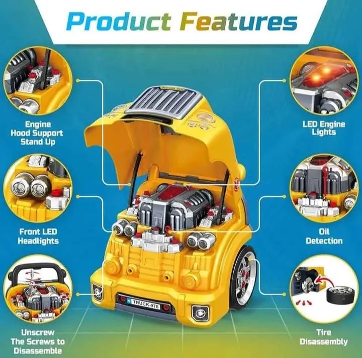 Kids Toy Young Mechanics Interactive Truck Engine with Removable Parts Lights Sounds Fun