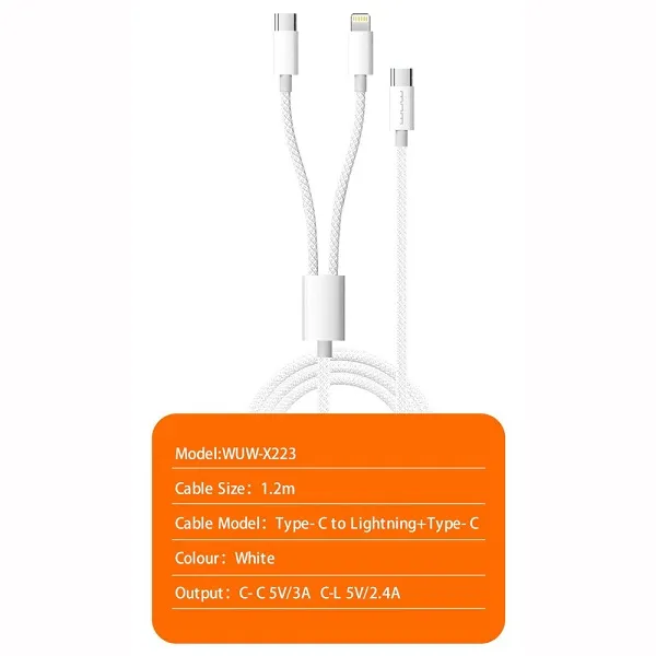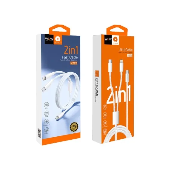 WUW X223 2 in 1 C+Type-C to Lightning Fast Charging Data Cable 1.2m The WUW X223 2-in-1 charging cable features USB-C and Type-C to Lightning connectors, supporting fast charging and data transfer ... Read More