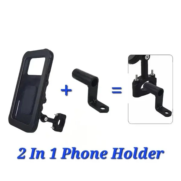 2 In 1 Motor Phone Holder Bicycle Phone Holder Handlebar Mirror Waterproof Flip Cover Universal phone holder for bicycle handlebars. Suitable for devices with a diagonal of up to 6.5 inches. ... Read More