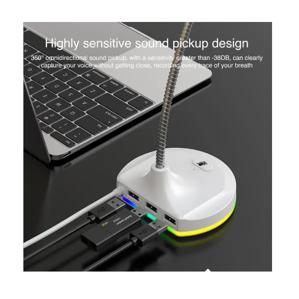 2 in 1 USB Multi-function Microphone RGB Light Built-in Sound Card Mic type: omnidirectional, matrix pickup Sensitivity: -38dB Impedance: 2.2KΩ Frequency: 100Hz-16KHz Signal-to-noi... Read More