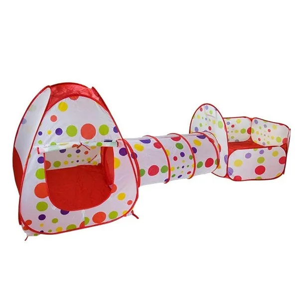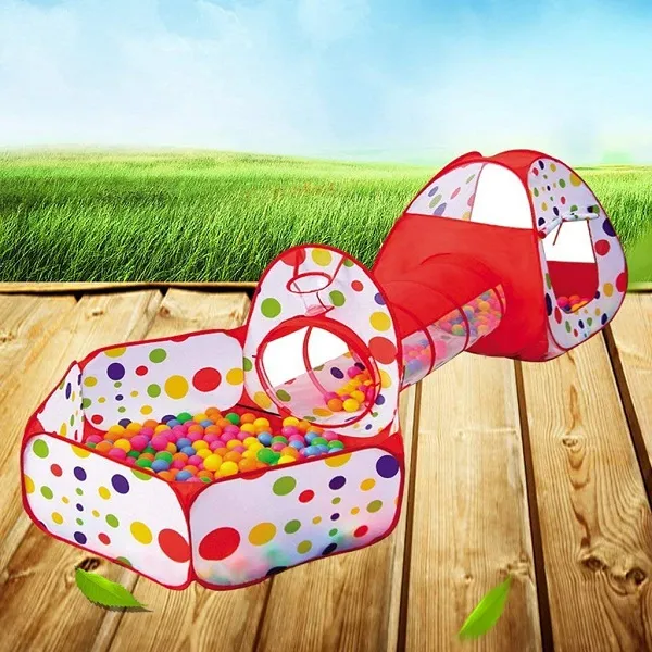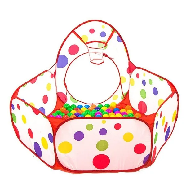 Kids 3 in 1 Crawling Tunnel and Ball Pit with Outdoor Hoop Basketball Tent with Zipper Storage Bag (0671)