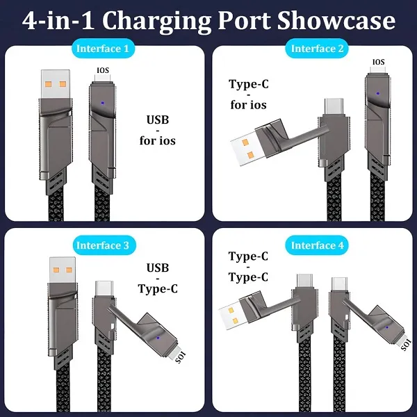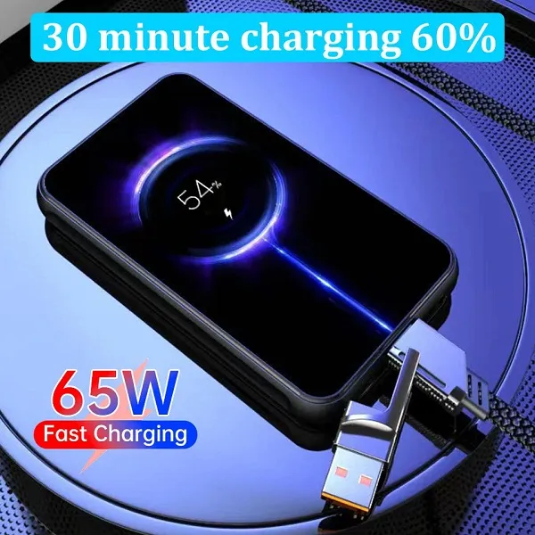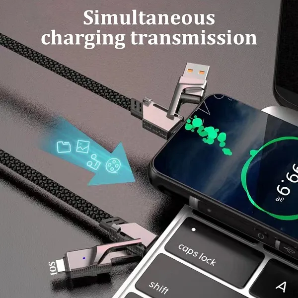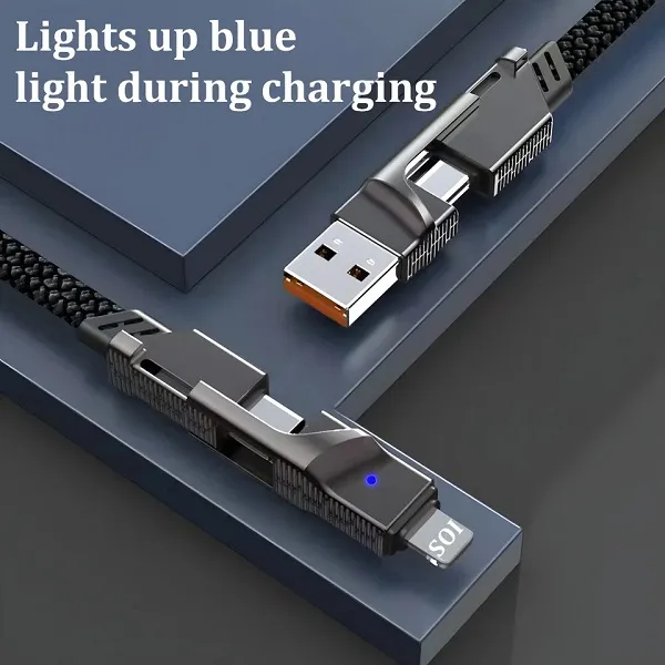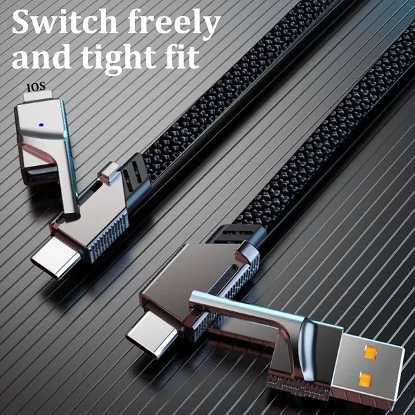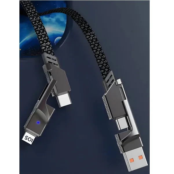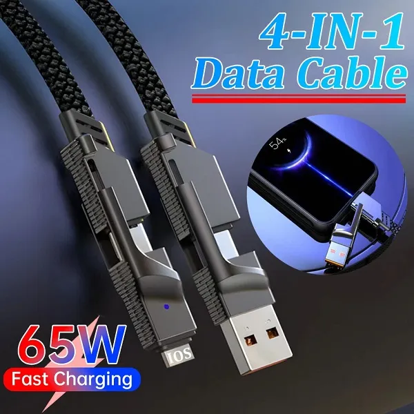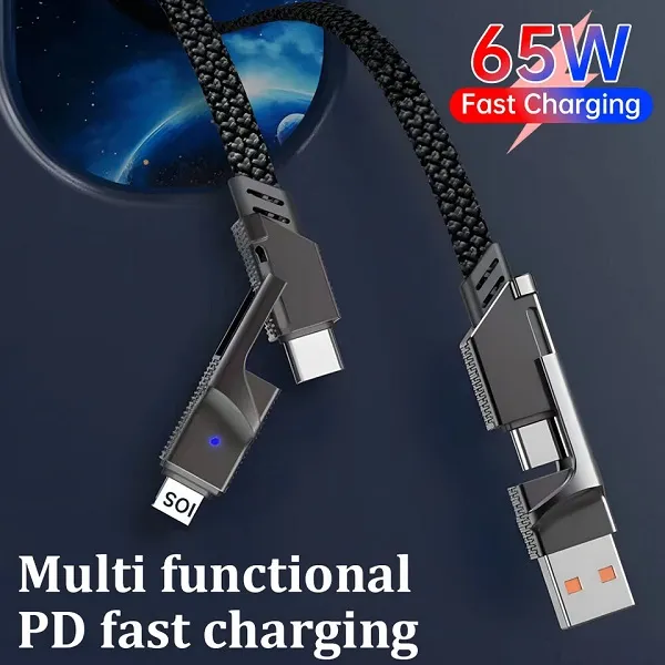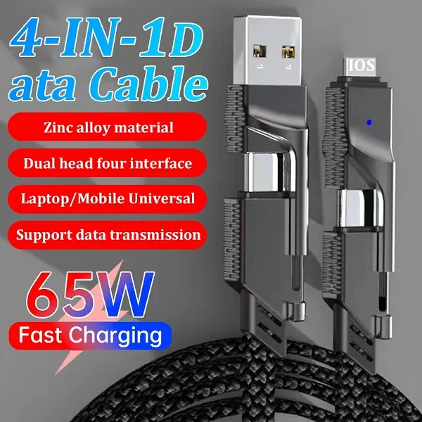 4 In 1 Zinc Alloy 3A 65W Fast Charging Data Cable