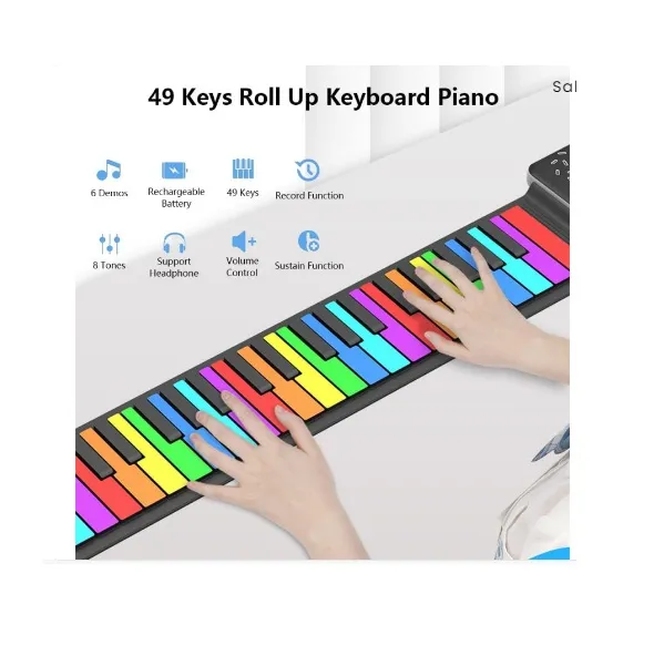 49 Key Roll Up Piano (0571) 10 rhythm keys 8 drum keys 2 tone keys Drum mode Demo mode (6 demo tracks) Learning mode Recording mode Tempo control Volume control Start/Stop butt... Read More