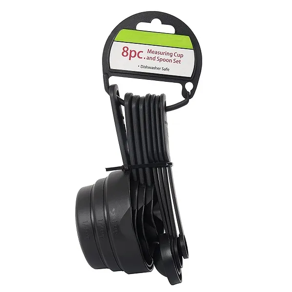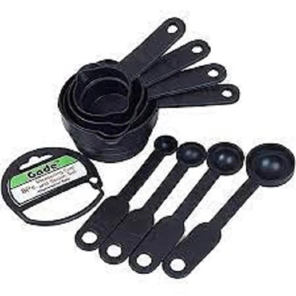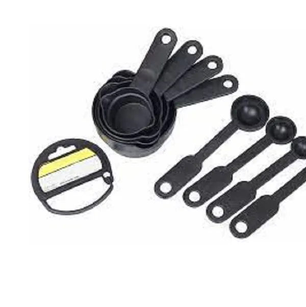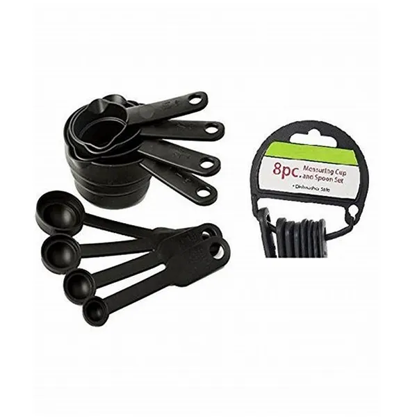 8 Pieces Measuring Cups And Spoon Set Perfect kitchen accessory. All come stacked together on a O ring. Nesting design provides easy storage. Thumb rest on each handle. 8-piece set 4 mea... Read More