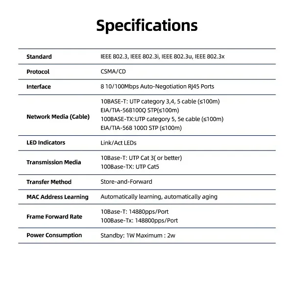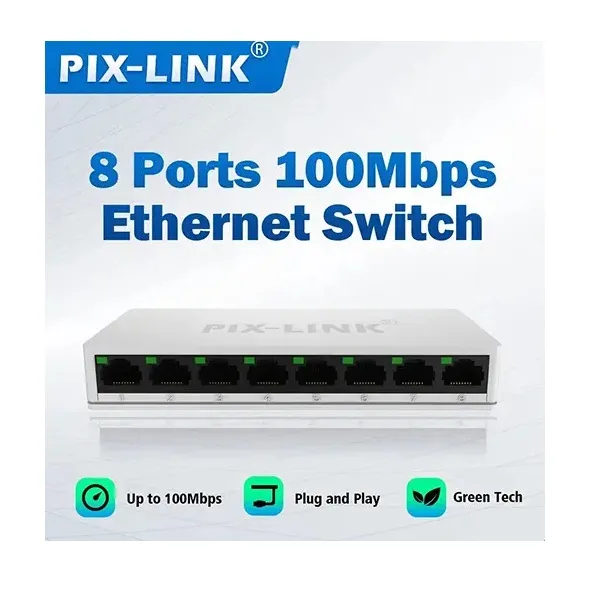 8 Port Network Switch PIX-LINK SW08 10/100Mbps Item: Switch Model: SW08B Standard: IEEE 802.3, IEEE802.3i, IEEE 802.3U, IEEE802.3x Protocol: CSMA/ Interface: 8 * 10/100Mbps RJ45 Ports ... Read More