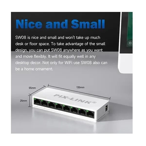 8 Port Network Switch PIX-LINK SW08 10/100Mbps
