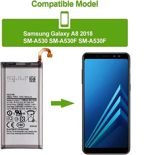 Samsung Galaxy A8 2018 Moible Phone Battery Model Number ; SAMSUNG EB-BA530ABE Battery Capacity ; Premium 3.82V, 3000mAh Condition ; New Fresh Stock Brand MP Compatible with: SAMSUNG A8 ... Read More