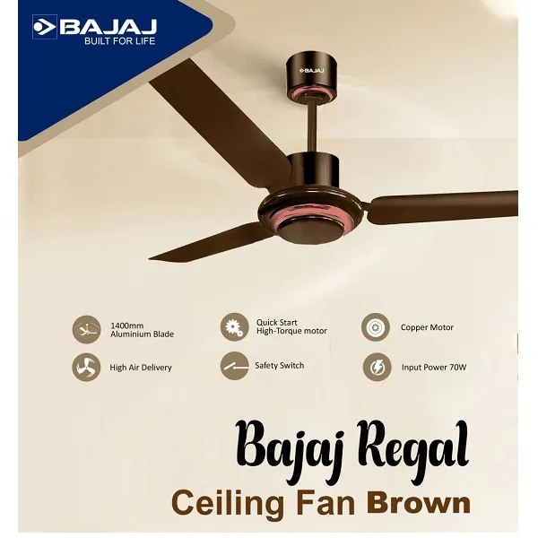 BAJAJ Regal Ceiling Fan (Brown) Quick Start High Torgue Motor 1400mm Alumuminiim Blade Copper Motor High Air Delivery Safety Swtich Input Power: 70W Superia P... Read More