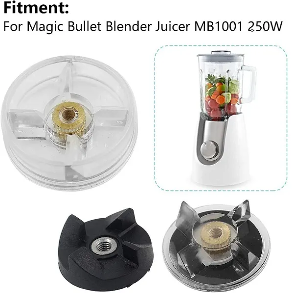 Magic Bullet Blenders 1 Motor Base Gear Classic 1 Upgraded & 1 Rubber Blade Gear Condition: Brand New Material: Plastic + Metal Color: Clear / Black Blade Gear Clutch Length: 30mm Ho... Read More