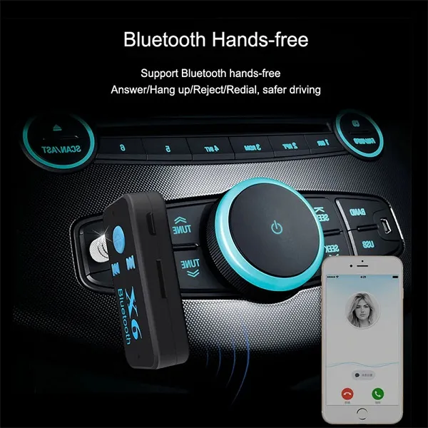 Car Wireless X6 Bluetooth USB Stereo Audio Play Adapter Support 3.5mm Jack