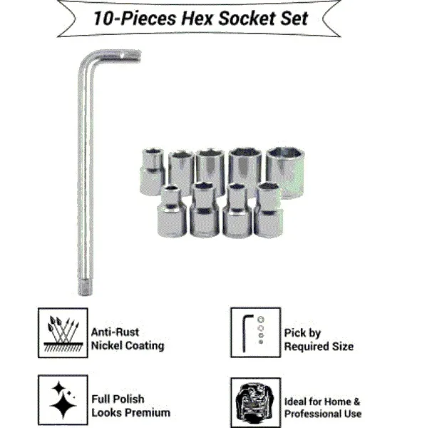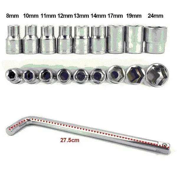 Box Sockets Spanners Wrenches Repair Tool Sets B/Case 10 Pcs No: 1810 1/2” Dr (8-21/22mm) China