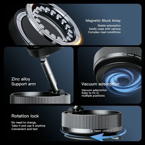 K10A Magsafe 360° Adjustable Car Navigation Bracket Vacuum Suction Cup Mobile Phone Stand