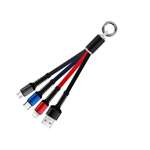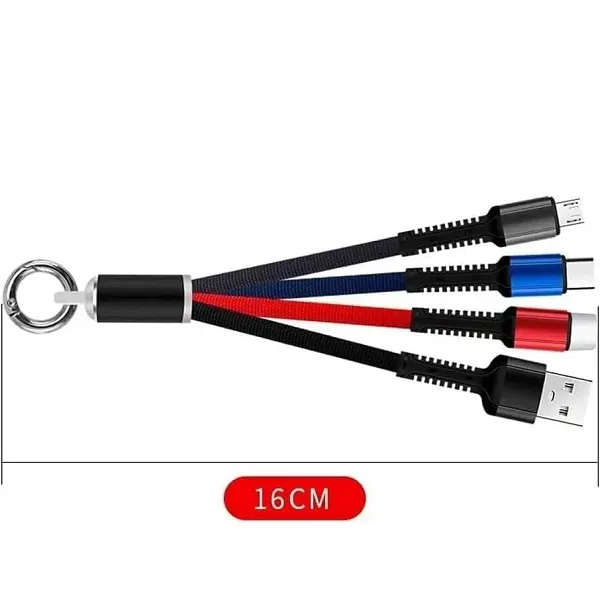 4 in 1 Fast Charging Cable with Keychain (USB +Micro + Lightning + Type-C)