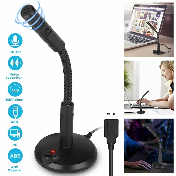 Laptop Desktop USB Computer Microphone Noise Canceling Voice Recording Mic Color:Black Material:ABS+Metal USB Cable Length:1.5M/5ft Sensitivity:-47±4dB Impedance:≤2.2... Read More