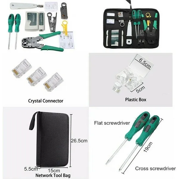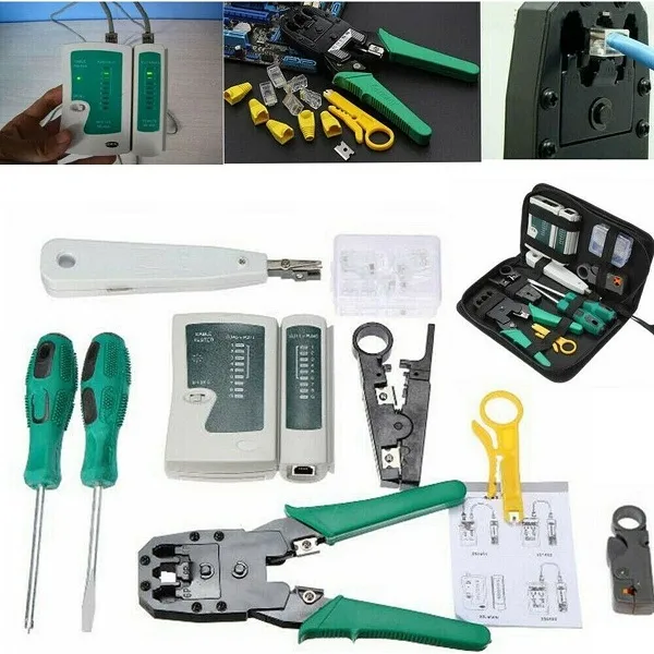 Crimping Tool Kit Professional Computer Maintenance Repair Set Bag Compact and Light Weight Network Cable Tester for RJ11 RJ12 RJ14 RJ25 RJ45 RJ61 Cat 5e Cat 5 Cat6 10/100 Base-T AT&T 258 ... Read More