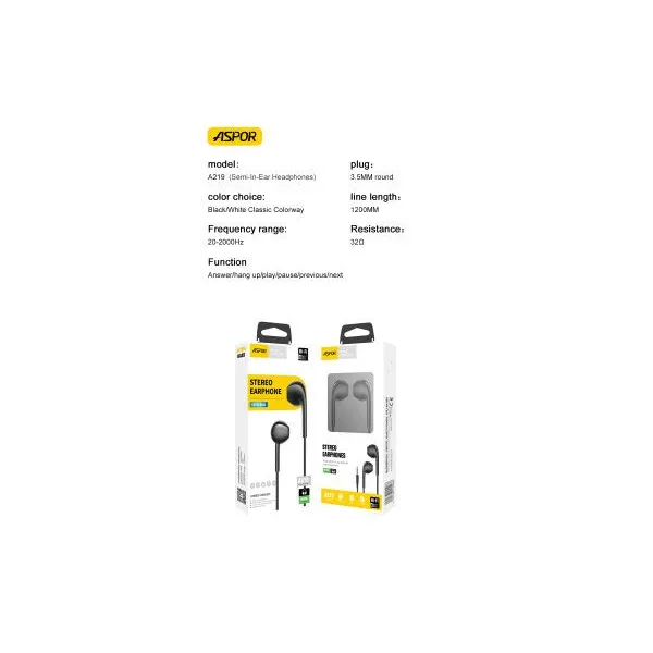 Aspor A219 3.5mm High Bass Quality Sound Earphone