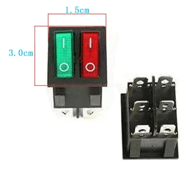 Kids Ride on Electric Vechicle 6 Pin RED GREEN Double Switch (SP73) 25X31mm Push Button Switch with 2 Colors lamp 6pin Rocker Switch KCD6 Colored Mounting Type : Panel Mount Material : Coppe... Read More