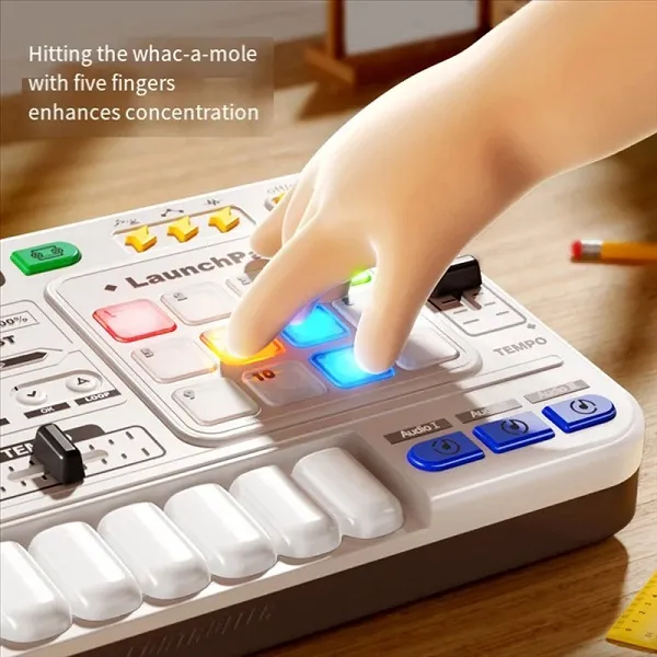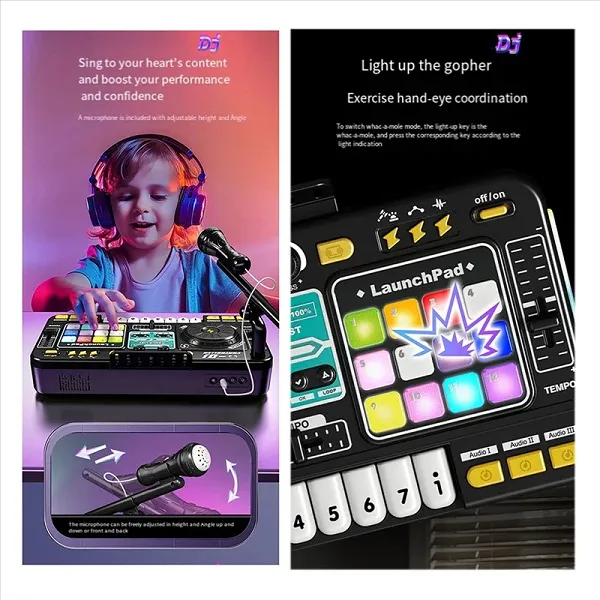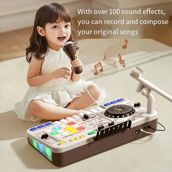 Kids Toddler Toy Electronic Musical DJ Mixer with Lights Songs Sound Effects (0637) Multiple play modes (whack-a-mole/MIDI/sound effects) Bluetooth mode, which can be connected to your phone t... Read More