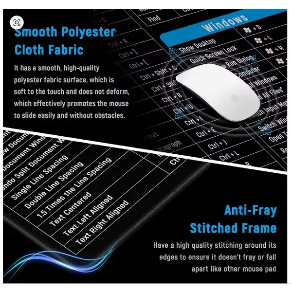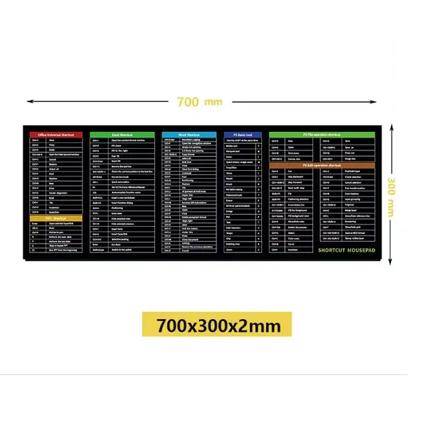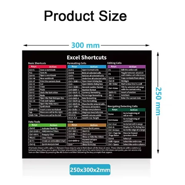 Excel Shortcuts Large Extended English Letter Shortcut Mouse Pad XL (700X300X2mm) Smooth performance: The smooth slit allows for a smooth and efficient mouse experience. Size 700x300x2 mm: Spa... Read More