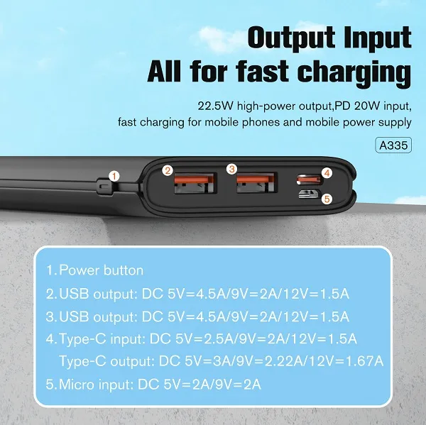 Aspor A335 22.5W 10000mAh Fast Charging Power Bank