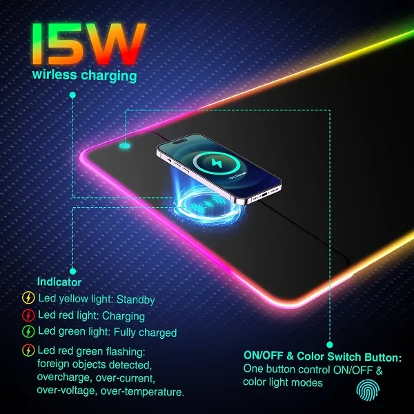 RGB Gaming Mouse Pad With Wireless Charging Pad