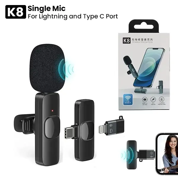K8 Single Mic Wireless Clip Microphone USB C and Lightning Ports 100% New & Excellent Quality Compatible with iPhone Lightning and Android Type C Port K8 Single Mic with Receiver Plug ... Read More