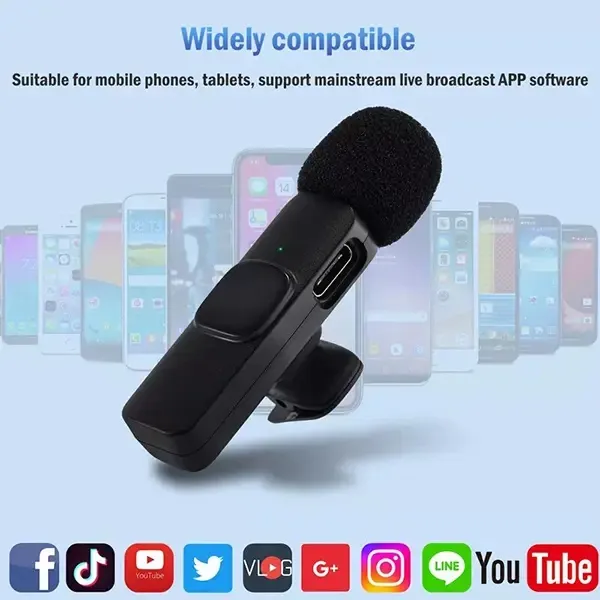 K8 Single Mic Wireless Clip Microphone USB C and Lightning Ports
