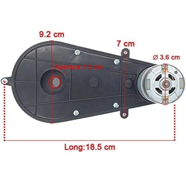 Kids Ride On Electric Car Motor Gearbox 12V 160000 RPM (SP10) Voltage: 12V Speed: 16000 RPM Colour: Black Length about: 17.5 Motor cog width is 6cm on the longest length Rechargeable b... Read More