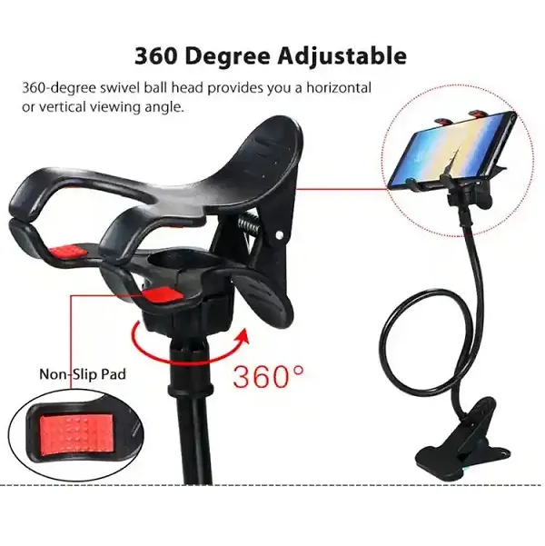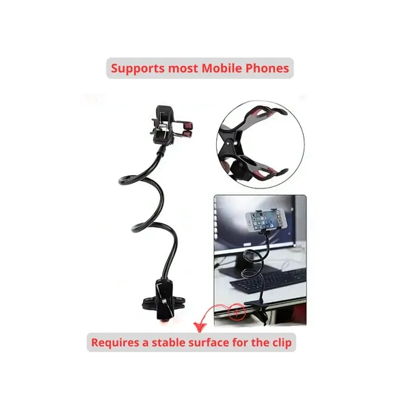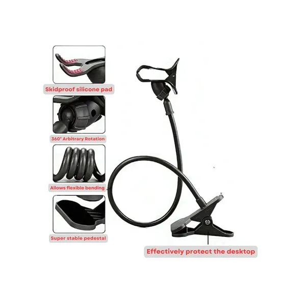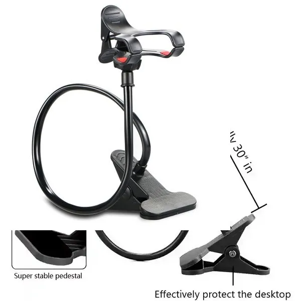 Universal Metal Lazy Bracket Mobile Phone Stand Flexible Gooseneck Long Arm Clip THE UNIVERSAL table desk grip mount fits for most smartphones. It has four clamps that sink in to grab your devic... Read More