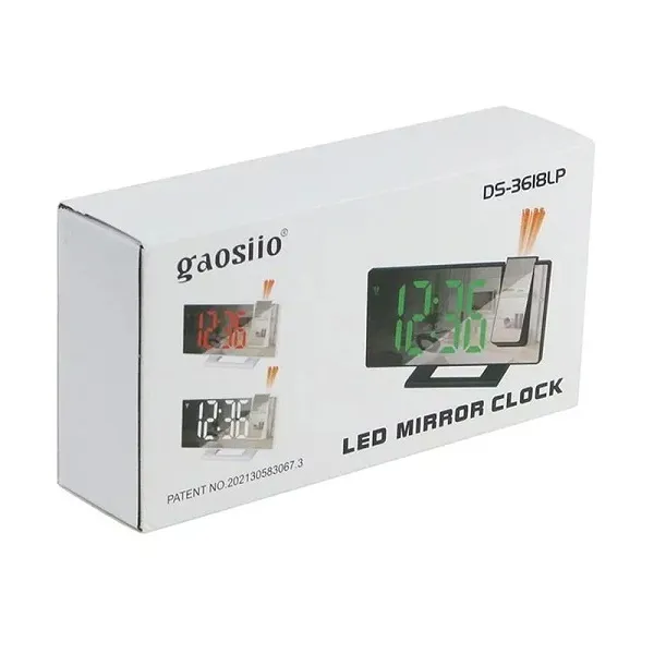 Gaosiio LED Mirror Digital Clock with Time/Temp/Date Display Projector Alarm (DS-3618LP)