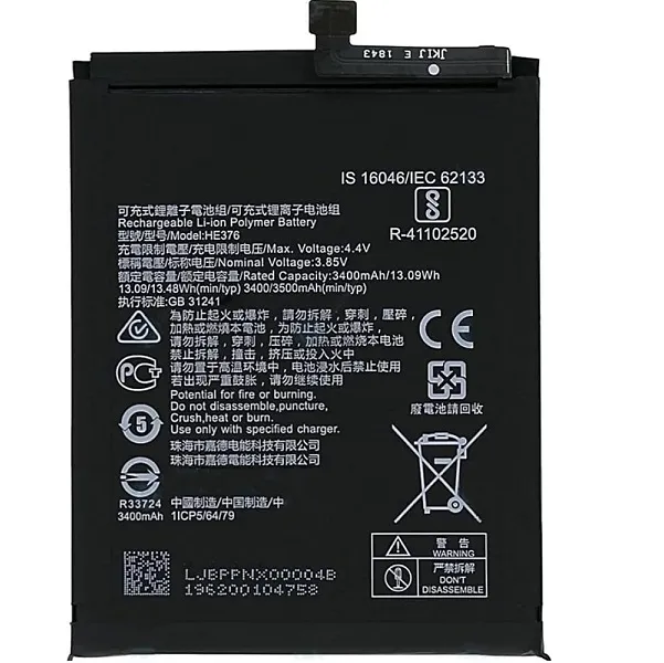 Nokia 3.1 Plus Mobile Phone Battery Brand : Nokia Model : HE363 Battery Type : Li-Ion Polymer Charging Time : 2 to 3 hours Battery Capacity : 3500 mAh Voltage in Volts(Approx... Read More